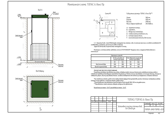 Топас 6 Лонг Пр представляет собой полностью укомплектованную автономную канализацию, готовую к установке и дальнейшей эксплуатации.